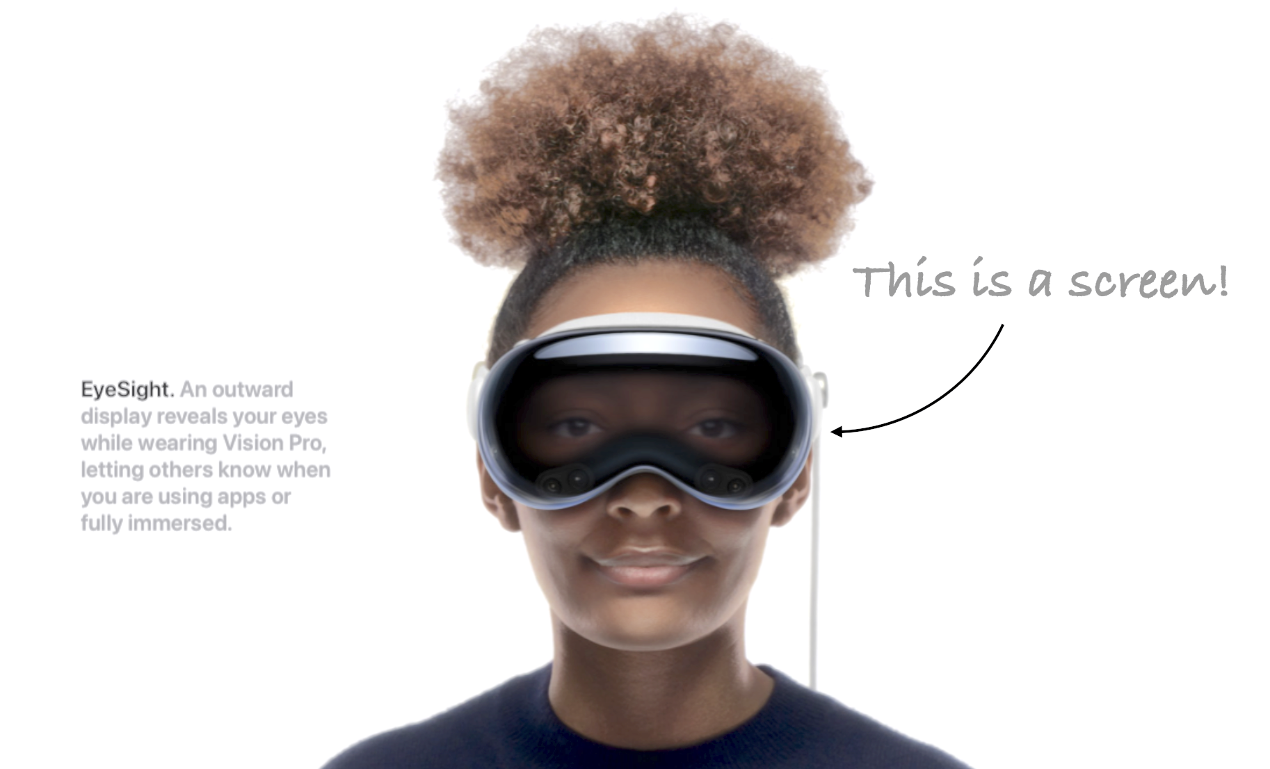 If you're like me, you might have thought that the Vision Pro is a see-through device, and people in the room can see your face through it. Well, you're mistaken. That isn't your face, that is a screen projecting your face, and I like it!